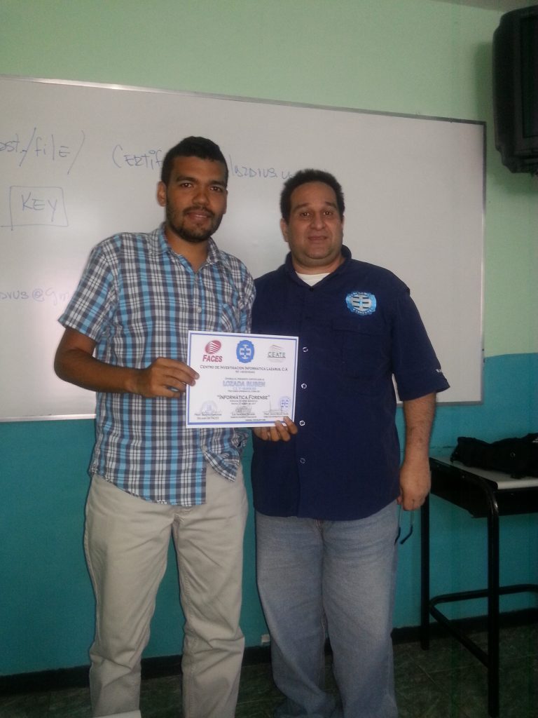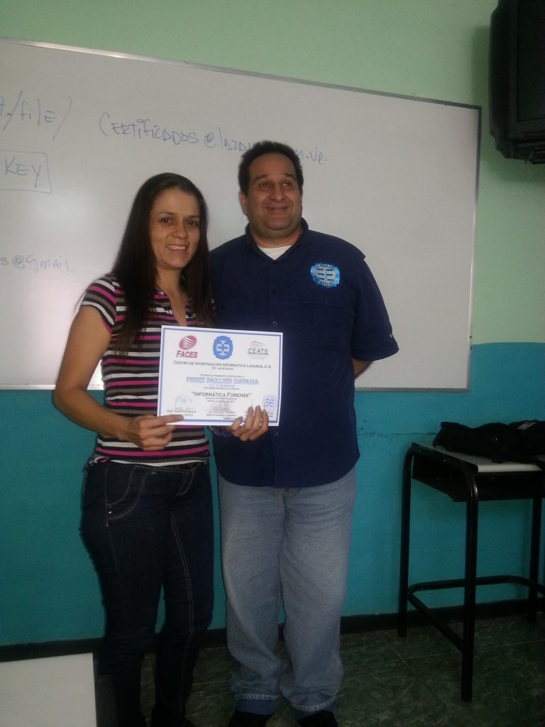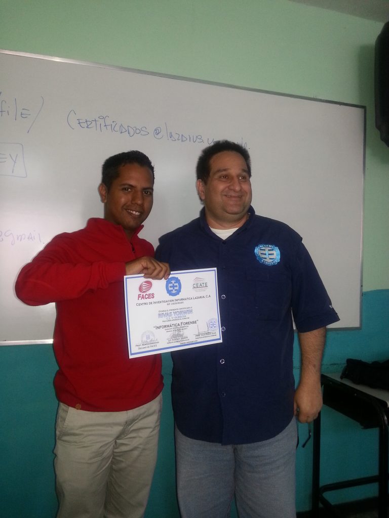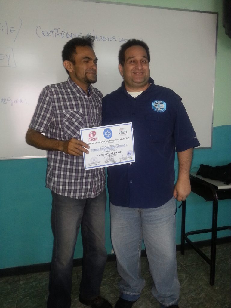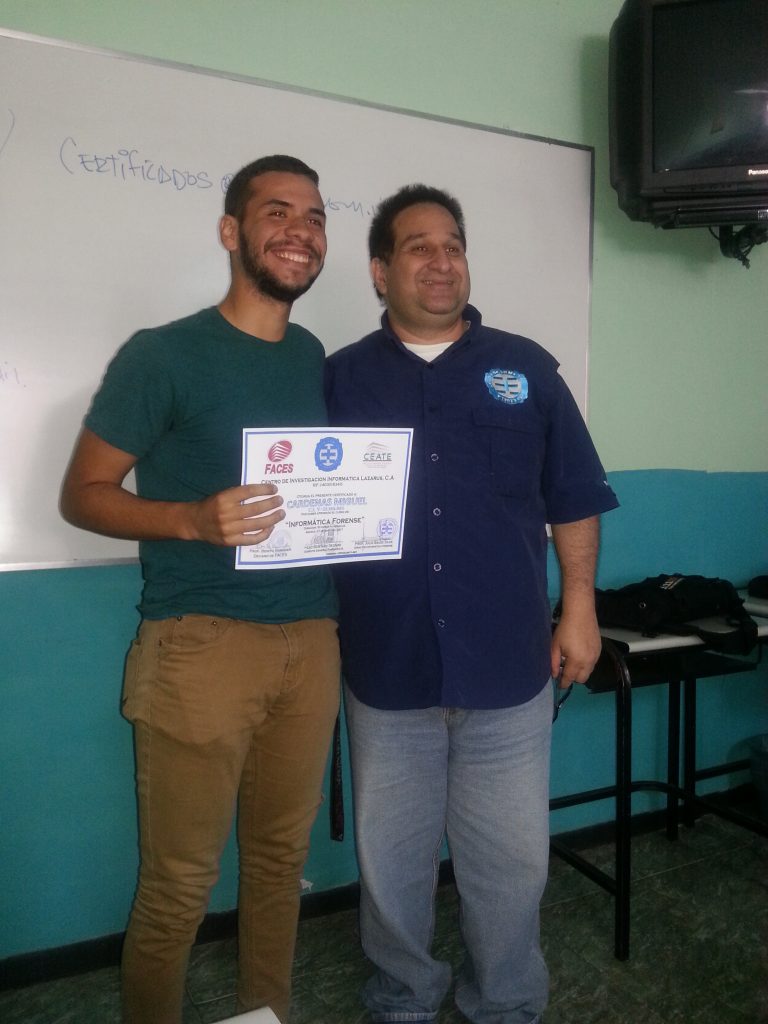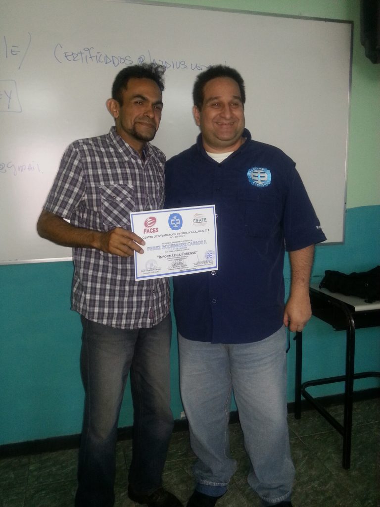 En un ambiente de armonía y profesionalismo , formado la nueva generación de relevo del mundo Forense, todo ello en un trabajo coordinado con el Centro de Entrenamiento de las Empresas de la Universidad de Carabobo como también la Facultad de Ciencias Económicas y Sociales de la UC y el Centro de Investigaciones Informáticas Lazarus. Creando nuevas comunidades a nivel nacional del mundo informático. Felicidades.